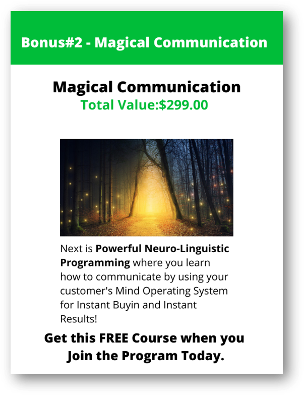 ✅ Secret #2: Learn to get yourself into Peak Emotional State at will using a powerful Neuro-Linguistic Programming technique and transmit this state into your customer and get him into a Peak Emotional State highly conducive to buying.